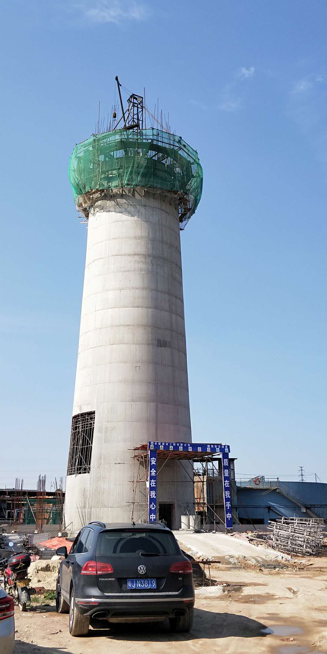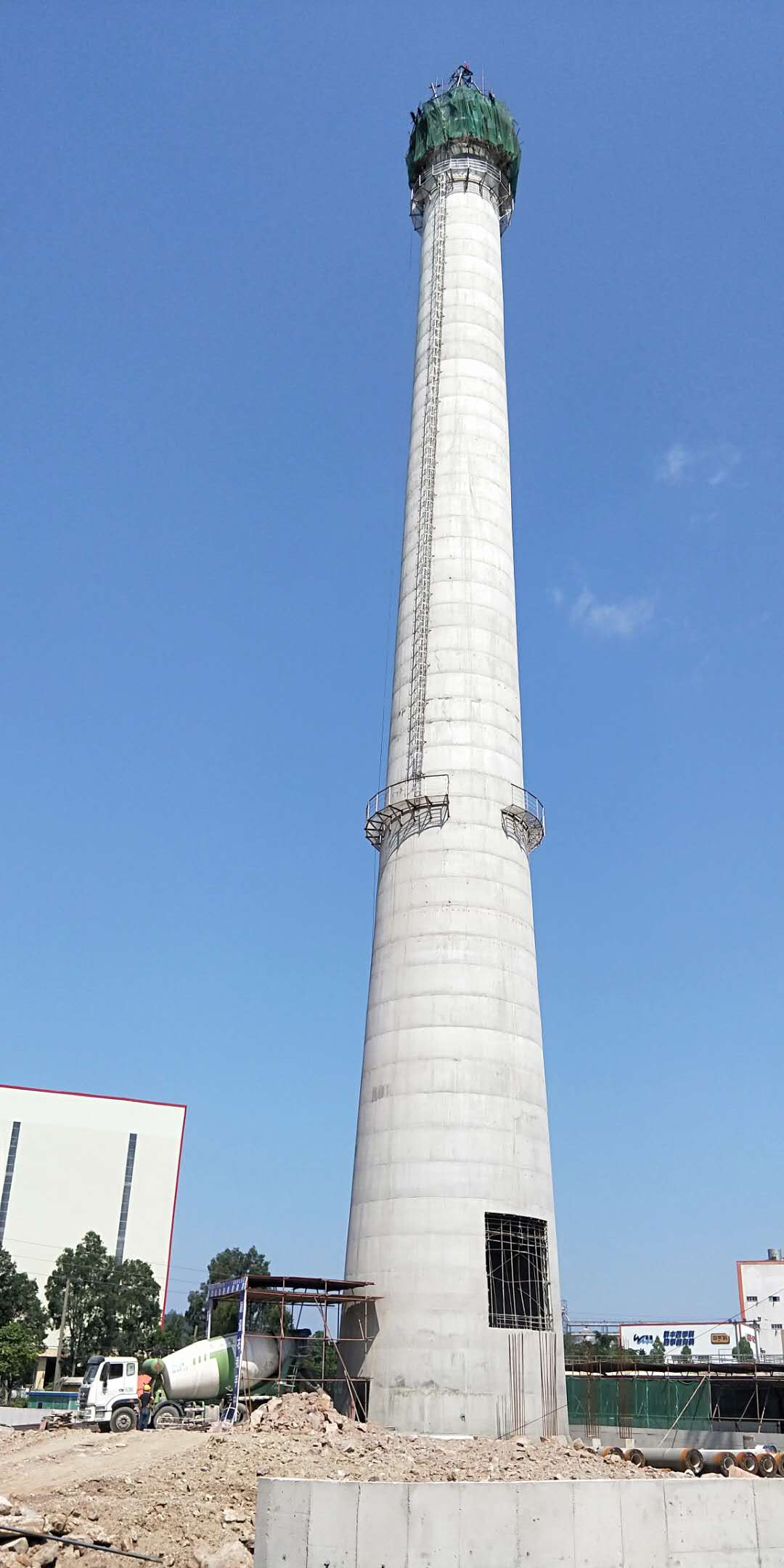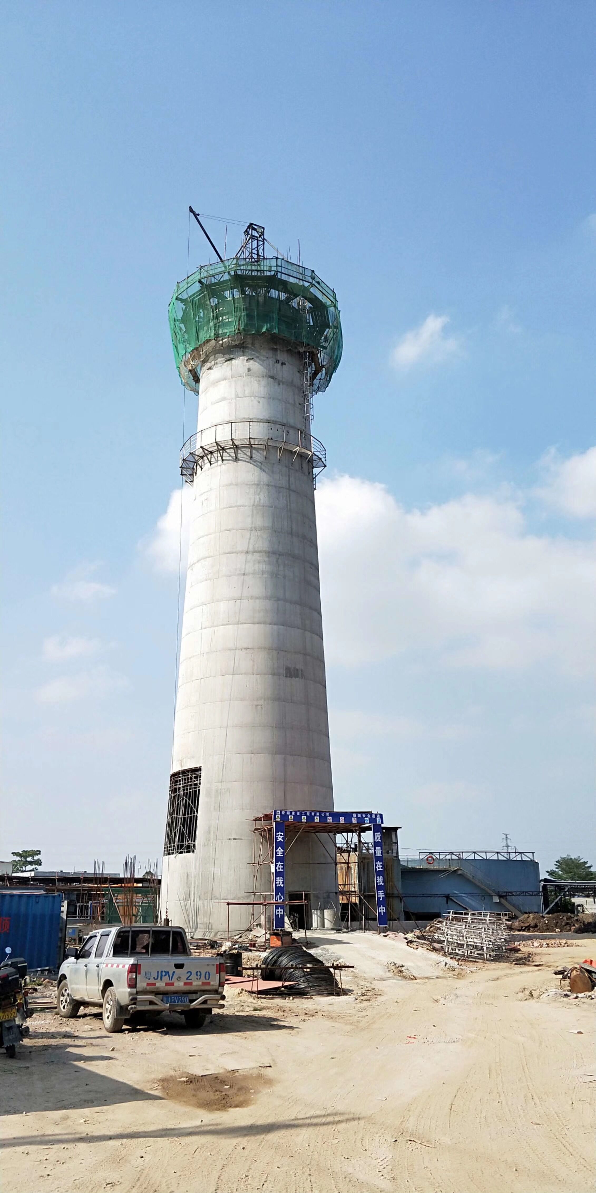 廣東新會100米煙囪新建工程封頂